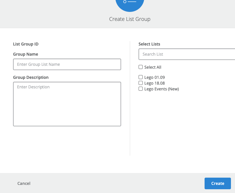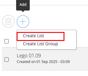 - Once that is done, please proceed to the left hand toolbar and create a list Group