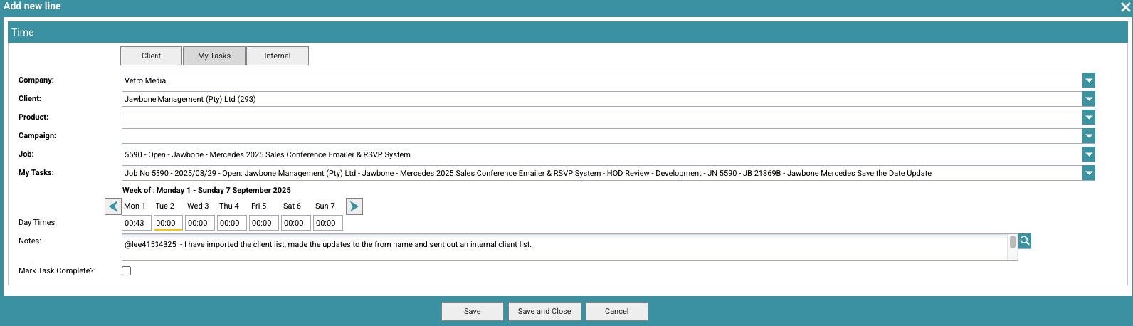 N.B. - The note must include a detailed description of what was done, any blockers as well as proposed solution and timeline. It must also include a link if applicable, and the time spent on the brief.
