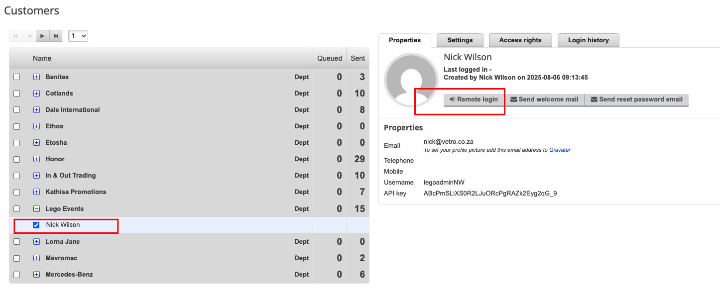 - First, click on your tenants name and proceed to remote login: Hover over your profile name > My customers > Select tenant name and expand > select checkbox and click tenant account holder name > Click remote Login