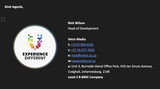It is important to get these right - because anyone reading the email will see the unifomred consistency that they would appreciate on their branded work
