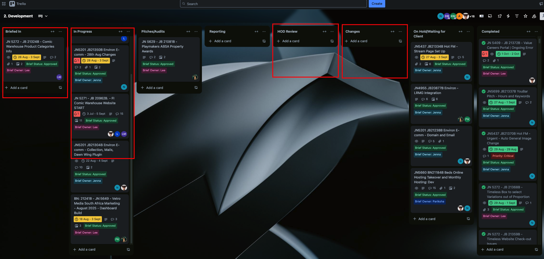 - Once you have completed a brief, you drag it into the "HOD Review" Section