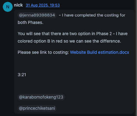 - After each work-sprint you take your commwent from your note and copy to chase - thisd must be done as each sprint is completed before moving onto the next task.