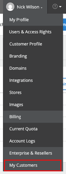 - First, click on your tenants name and proceed to remote login: Hover over your profile name > My customers > Select tenant name and expand > select checkbox and click tenant account holder name > Click remote Login