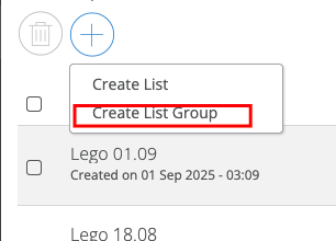 - Once that is done, please proceed to the left hand toolbar and create a list Group