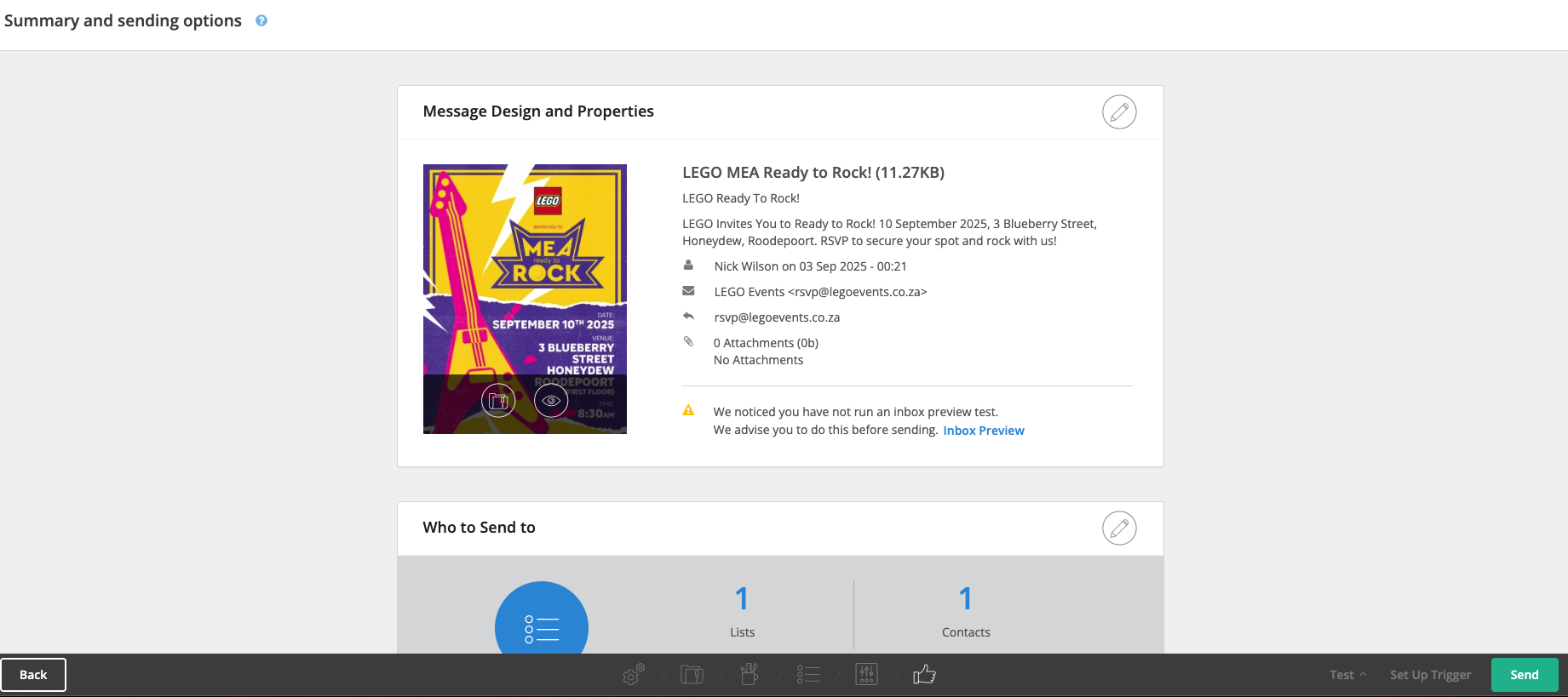 - Important: No sending (test or live) will occur during this phase until setup is complete.