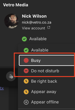 - If you see someone is on red status (Busy or Do not disturb/presenting) it usually signifies that they are in a meeting - please dont try and call them - it is distracting and can disrupt the meeting - rather send them a message and they will call you back when they are done.